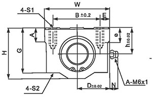 | 密封型 | 轴径 | h | D | W | L | H | G | A | B | C | E | S1xe | S2 | |